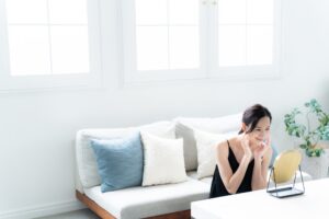 まずは鏡から少し離れて顔全体を確認すると、原因を見つけやすくなります。